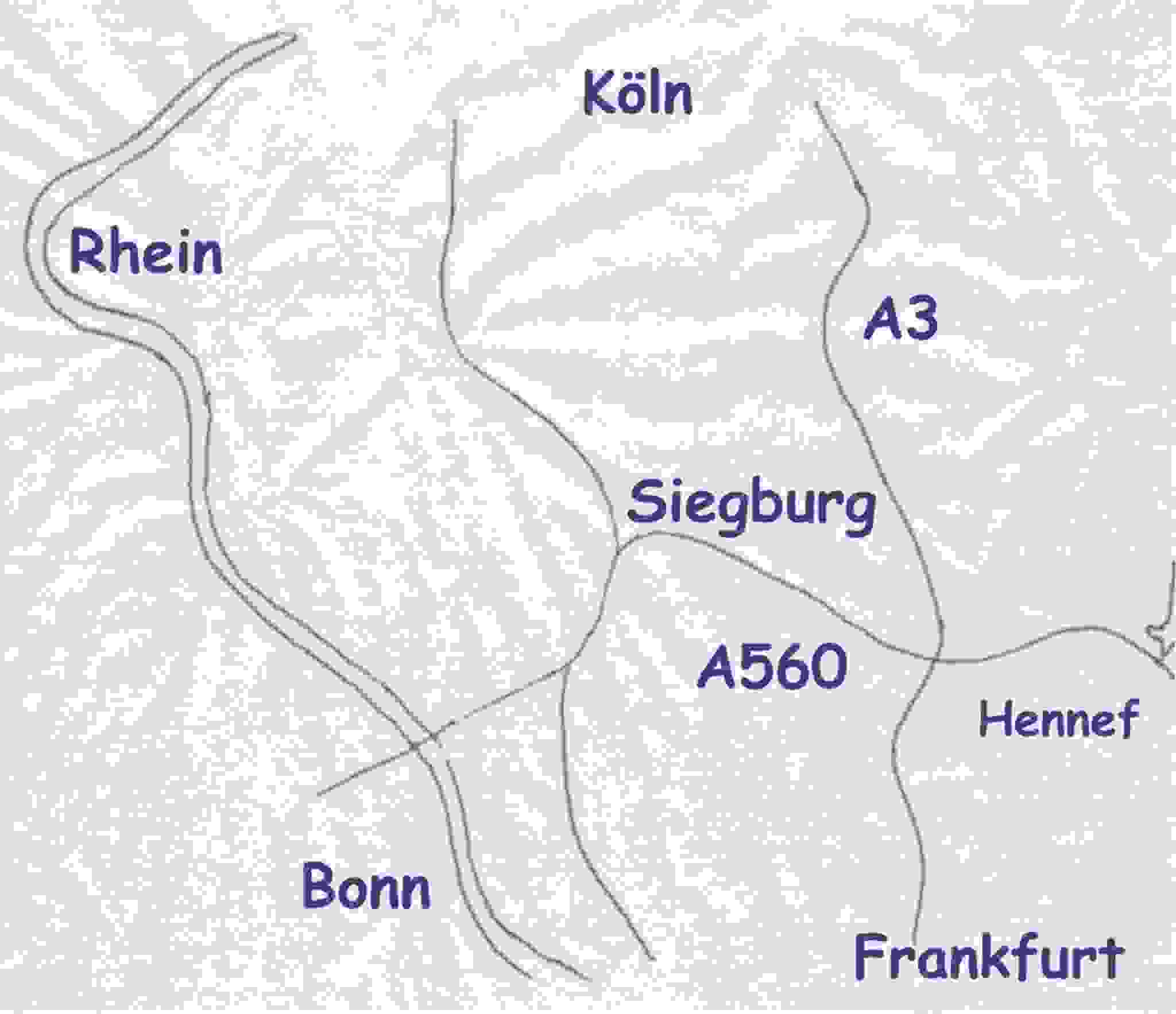 Aus dem Norden von der A3 kommend Richtung Frankfurt bis Autobahn Kreuz Bonn